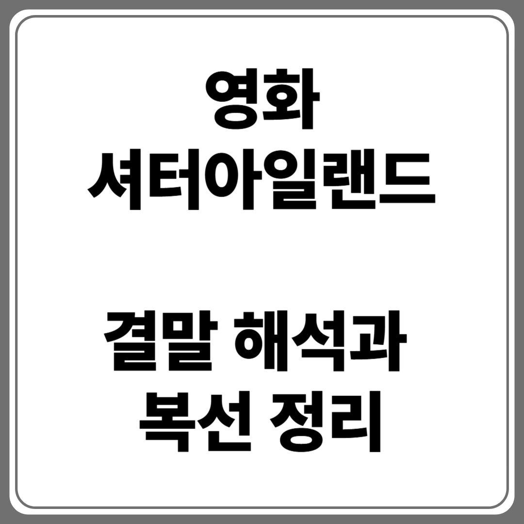 ‘셔터아일랜드’는 단순한 반전 영화가 아니라, 인간 심리의 어둠과 죄책감, 기억의 불완전성을 다룬 철학적 작품이다. 결말 해석은 관객의 가치관과 해석에 따라 달라지며, 복선과 상징을 통해 매번 새로운 의미를 발견할 수 있다. 이 영화를 처음 봤다면, 다시 한번 집중해서 관람해보길 권한다. 진실은 언제나 단순하지 않다.